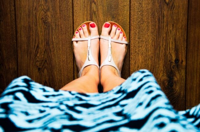 Para transformá-la no ponto focal, considere looks monocromáticos que não desviem a atenção, ou tons neutros que favoreçam sua essência única. Outra dica infalível: invista em pedicures criativas, as cores ou nail arts nos pés podem adicionar um toque extra de personalidade, compondo uma combinação harmoniosa com a sandália.